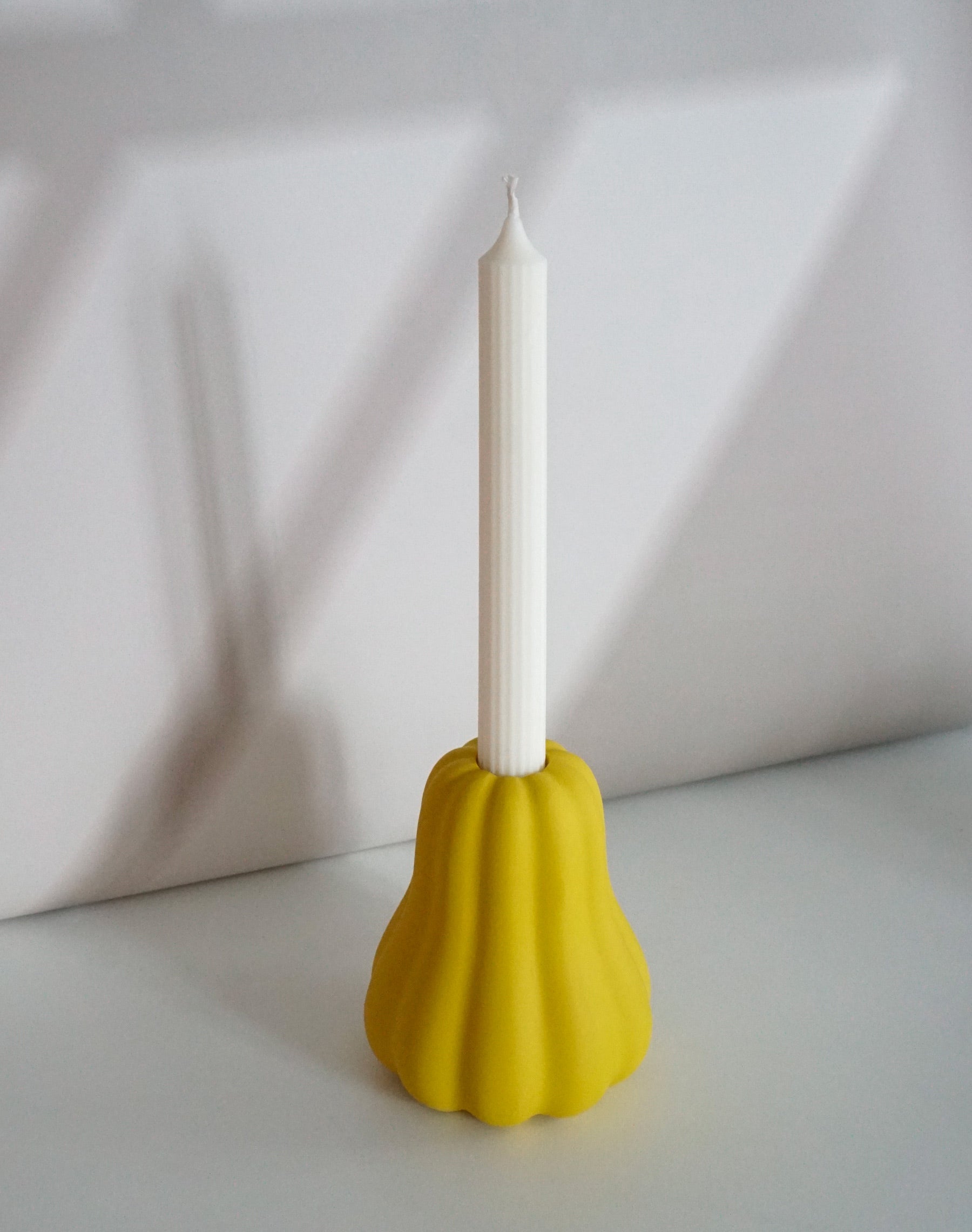 Pensé pour sublimer vos bougies effilées ou décoratives, le bougeoir Courge se marie parfaitement avec nos créations artisanales, pour une ambiance chaleureuse et élégante.