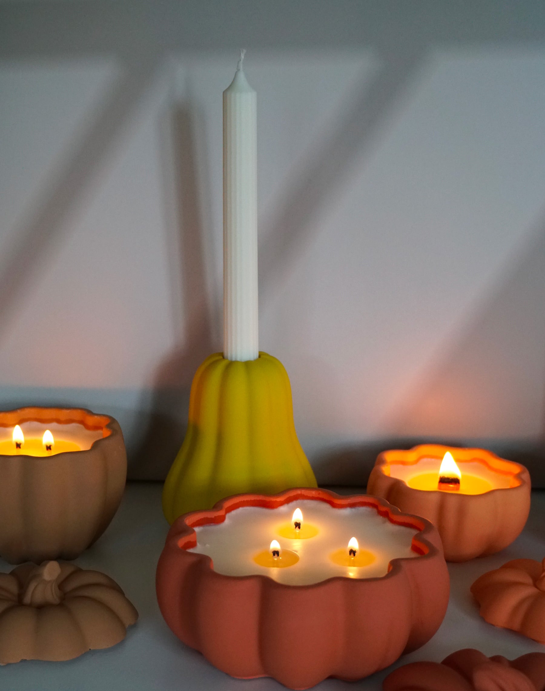 Alliez originalité et ambiance chaleureuse avec cette bougie en forme de citrouille, entièrement faite à la main en jesmonite. Véritable objet décoratif, elle séduit par son design ludique et sa finition soignée.