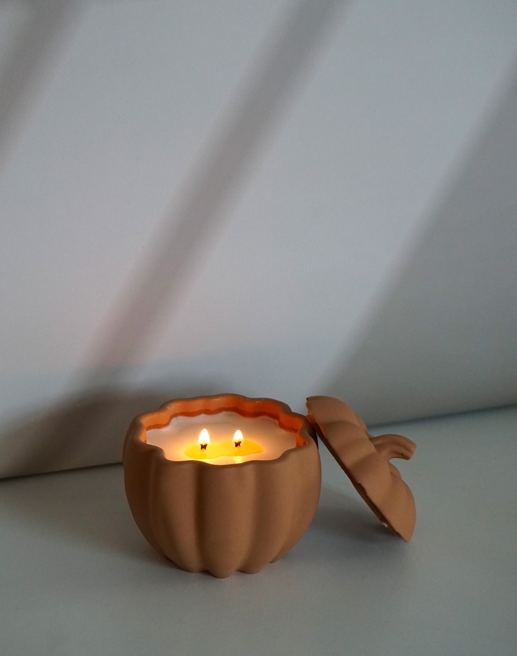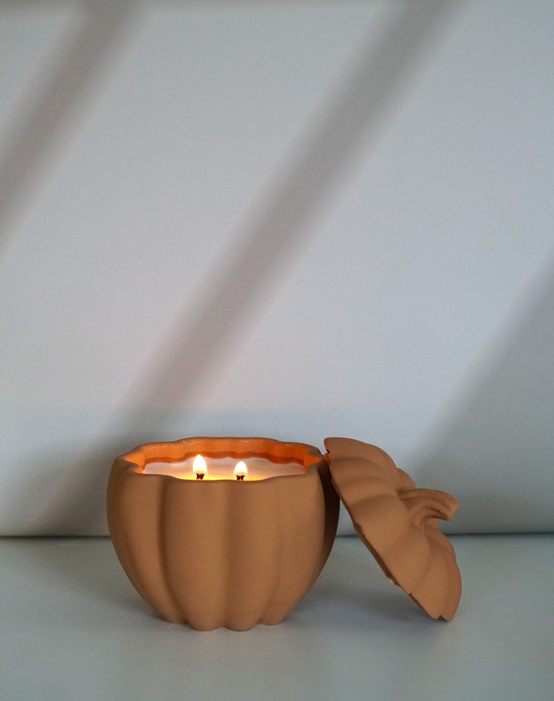 Avec son contenant en forme de citrouille et son couvercle assorti, Morticia évoque à la fois l’automne, Halloween et les soirées cocooning au coin de la flamme.